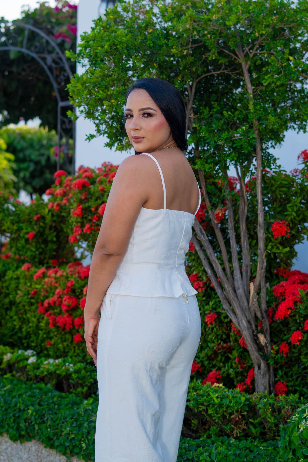 Set elaborado en lino, tela con textura bordada.